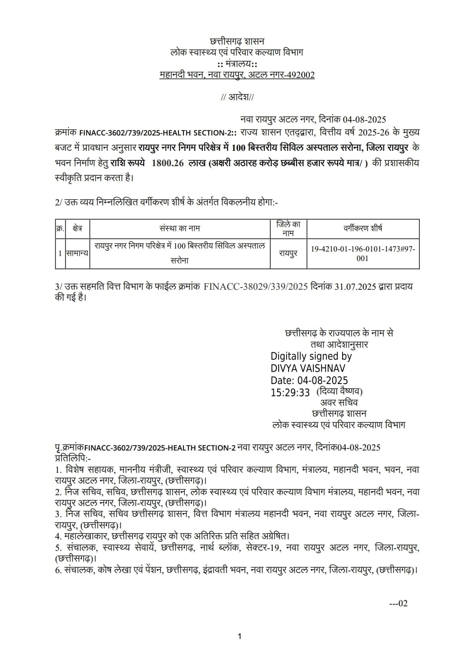 रायपुर पश्चिम में पहली बार 100 बिस्तर अस्पताल खुलने जा रहा है।