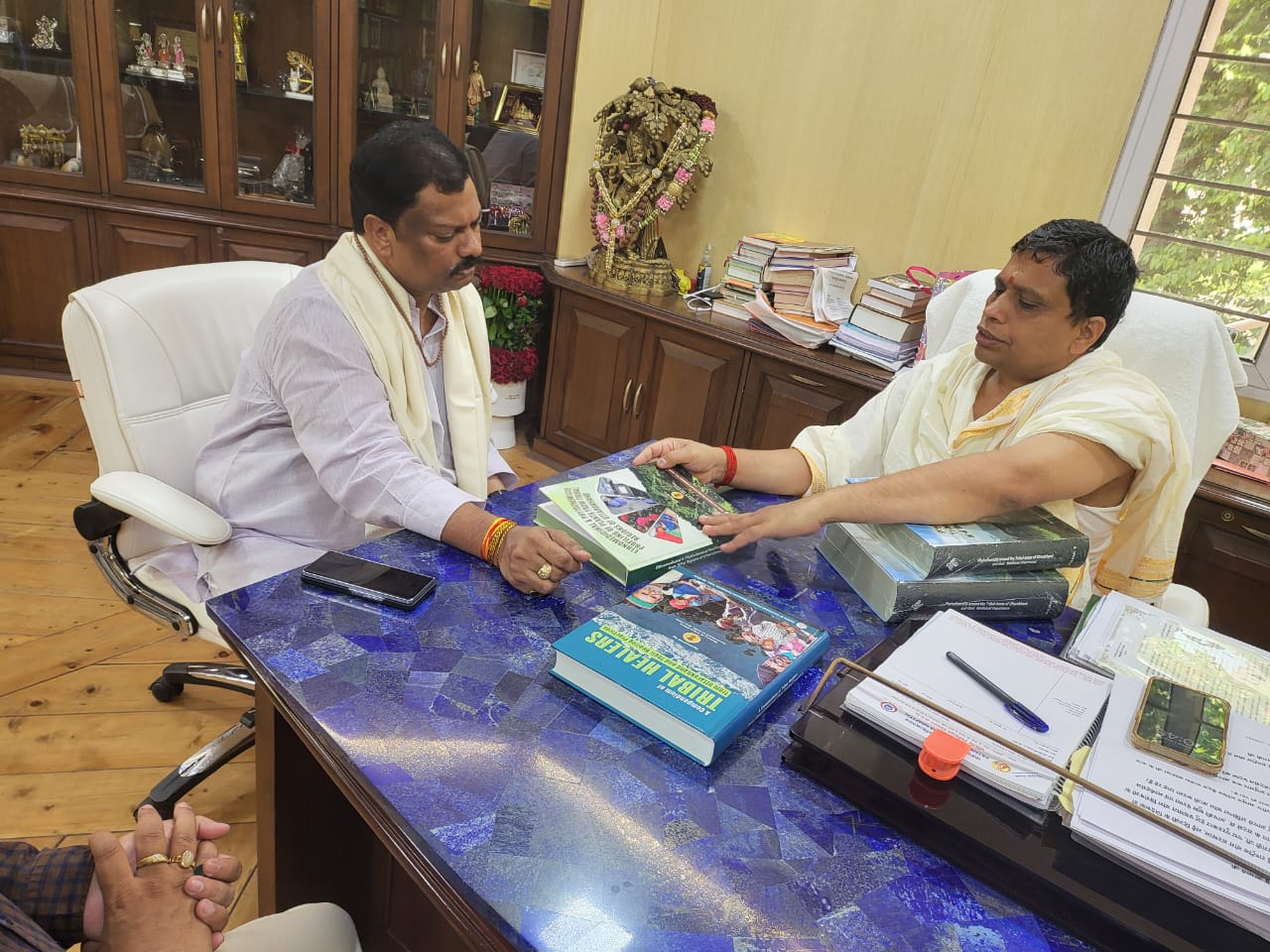 त्रिनेत्र टाइम्स रायपुर | छत्तीसगढ़ आदिवासी स्थानीय स्वास्थ्य परंपरा एवं औषधीय पादप बोर्ड के अध्यक्ष श्री विकास मरकाम ने आज हरिद्वार स्थित पतंजलि योगपीठ में आचार्य श्री बालकृष्ण जी से सौजन्य भेंट की। यह मुलाकात अत्यंत प्रेरणादायक एवं ज्ञानवर्धक रही। इस अवसर पर पारंपरिक ज्ञान, औषधीय पौधों, अनुसंधान एवं आयुर्वेद के क्षेत्र में किए जा रहे राष्ट्रहितकारी कार्यों का प्रत्यक्ष अवलोकन किया गया।