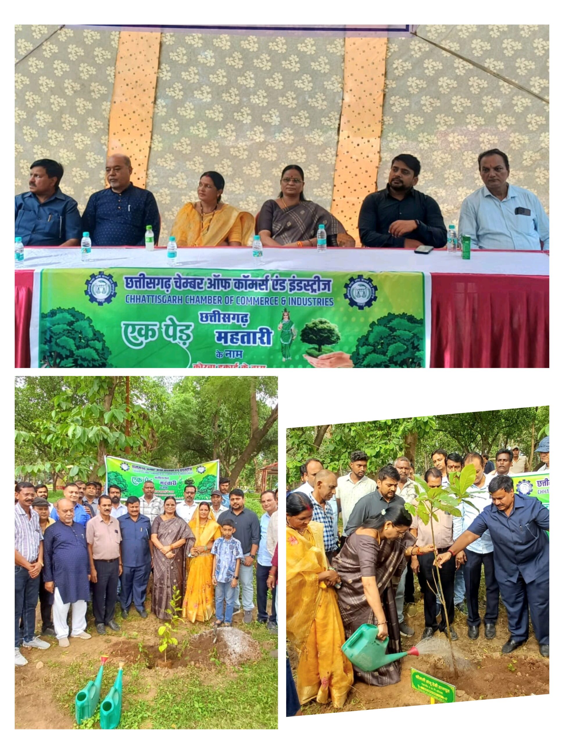 मंच को आकर्षक तरीके से सजाया गया था, जिस पर “एक पेड़ छत्तीसगढ़ महतारी के नाम” का स्लोगन प्रमुख रूप से अंकित था। कार्यक्रम में चेंबर के सदस्यों सहित शहर के अन्य गणमान्य नागरिक भी उपस्थित रहे।