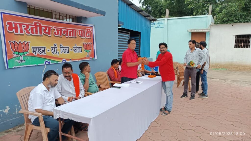 त्रिनेत्र टाइम्स कोरबा। मोर तिरंगा मोर अभिमान और हर घर तिरंगा – घर-घर तिरंगा अभियान के तहत भारतीय जनता पार्टी मंडल दर्री में एक महत्वपूर्ण बैठक आयोजित की गई। बैठक का उद्देश्य 10 से 15 अगस्त तक हर बूथ पर तिरंगा झंडा लगाने और तिरंगा यात्रा में अधिक से अधिक संख्या में लोगों की भागीदारी सुनिश्चित करना था।