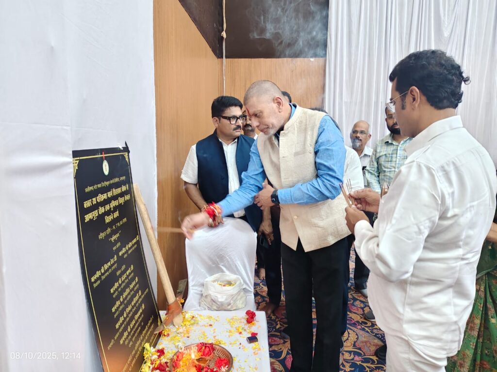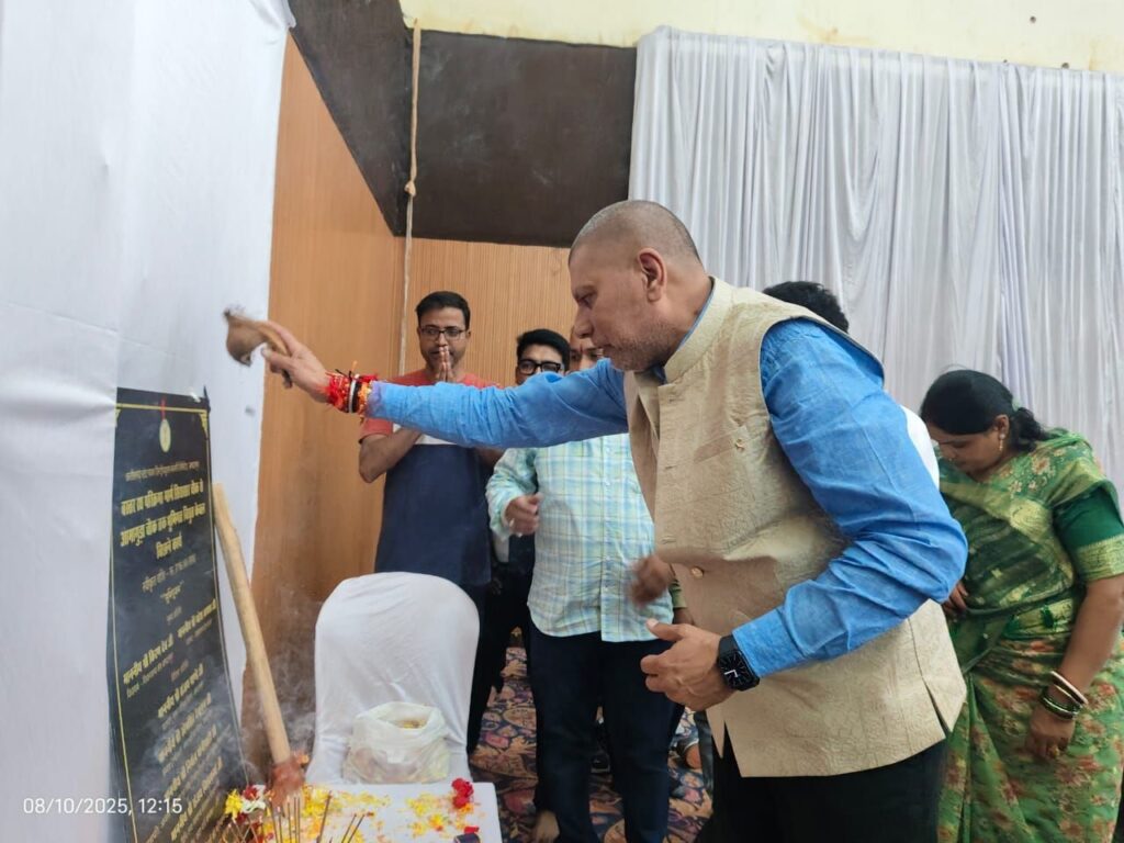 श्यामा प्रसाद मुखर्जी सभागार में आयोजित भूमिपूजन कार्यक्रम में भाजपा प्रदेश अध्यक्ष किरण देव एवं महापौर संजय पांडे हुए शामिल