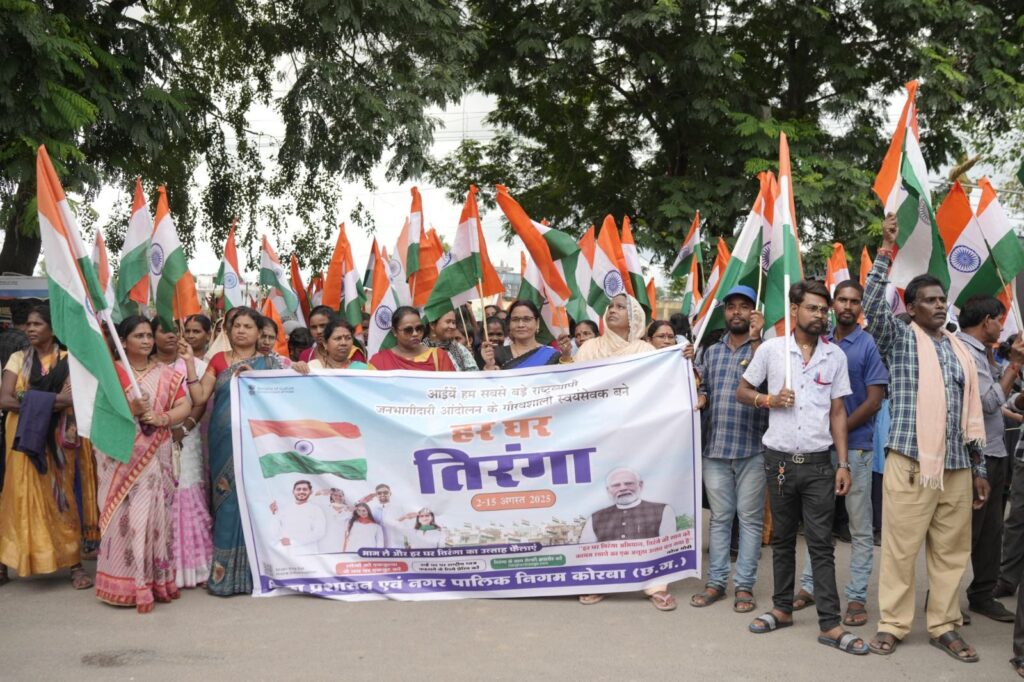 वाणिज्य उद्योग व श्रम मंत्री छत्तीसगढ़ शासन श्री लखन लाल देवांगन के मुख्य आतिथ्य में राष्ट्रव्यापी हर घर तिरंगा अभियान के तहत आज कोरबा नगरीय क्षेत्र के घण्टाघर के ओपन थियेटर मैदान में तिरंगा यात्रा का आयोजन किया गया। कैबिनेट मंत्री श्री देवांगन ने तिरंगा यात्रा को हरी झंडी दिखाकर रवाना किया। यह रैली घंटाघर स्थित ओपन थियेटर मैदान से प्रारम्भ होकर शहर के प्रमुख चौक महाराणा प्रताप चौराहे से होते हुए वापस ओपन थियेटर मैदान में समाप्त हुई।