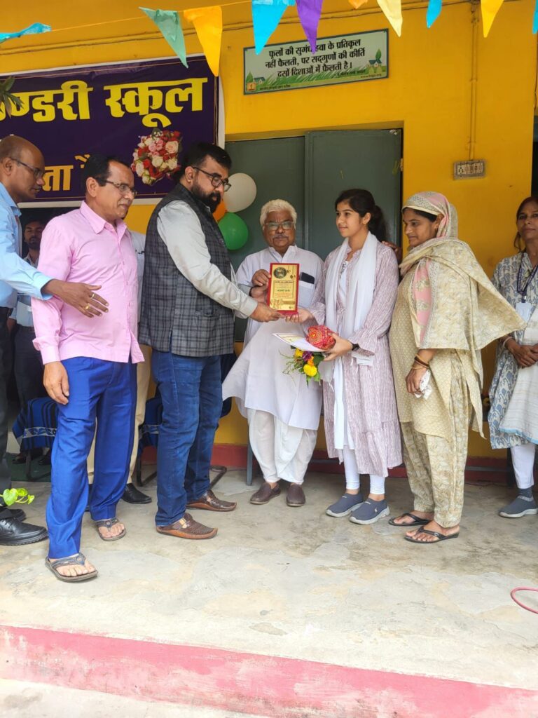 कार्यक्रम के दौरान कक्षा 10वीं और 12वीं की बोर्ड परीक्षा में उत्कृष्ट प्रदर्शन करने वाले मेधावी विद्यार्थियों को शैक्षिक पुरस्कार प्रदान किए गए। विशेष रूप से कक्षा 12वीं की छात्रा कुमारी नाजमा बानो ने 94.6% अंक प्राप्त कर जिले में द्वितीय स्थान हासिल किया, जिससे विद्यालय, जिला और परिवार का गौरव बढ़ा।