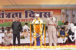 “सीएसईबी ग्राउंड में ध्वजारोहण कर मंत्री लखन लाल देवांगन ने ली परेड की सलामी”