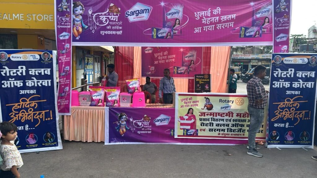 रोटरी क्लब ऑफ कोरबा ने जन्माष्टमी पर भव्य प्रसाद वितरण कर रचा सेवा का उदाहरण