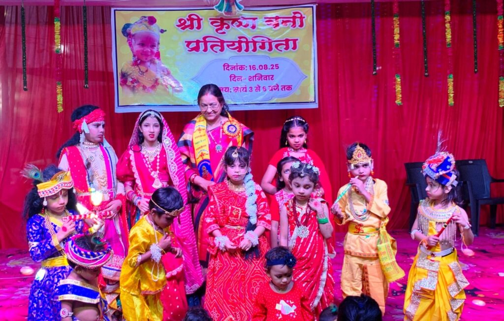 5 से 10 वर्ष तक के बच्चों में राधा-कृष्ण प्रतियोगिता आयोजित की गई।