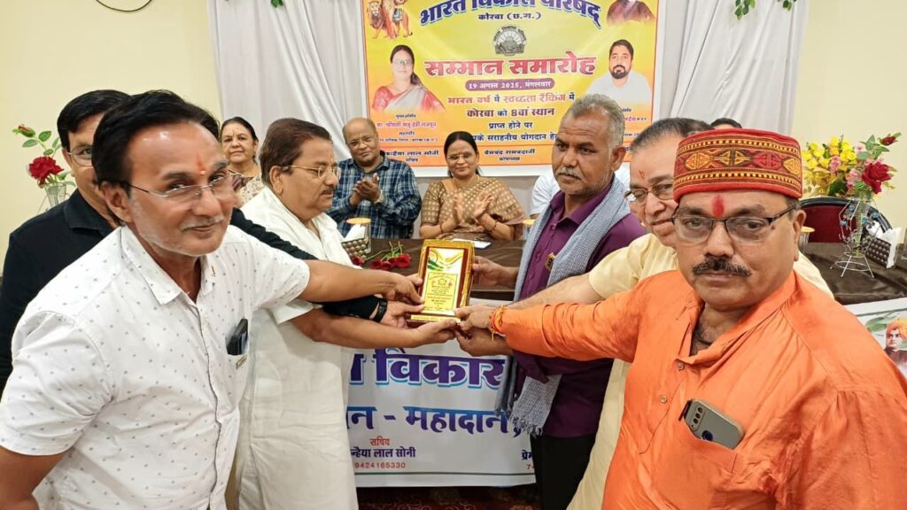 देश में 8वां स्थान पाकर चमका कोरबा नगर निगम, भारत विकास परिषद ने किया भव्य सम्मान समारोह
