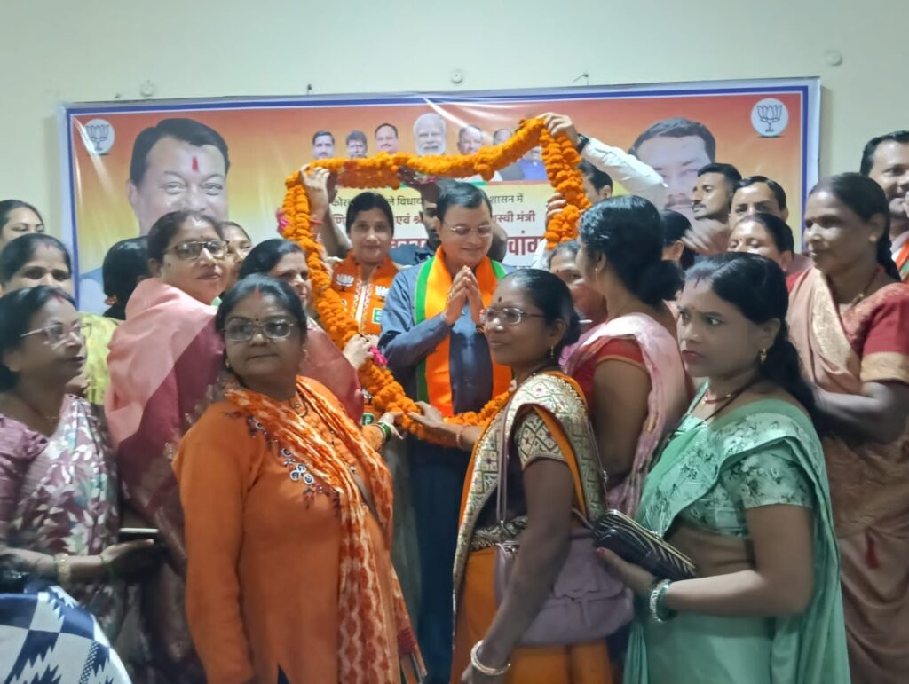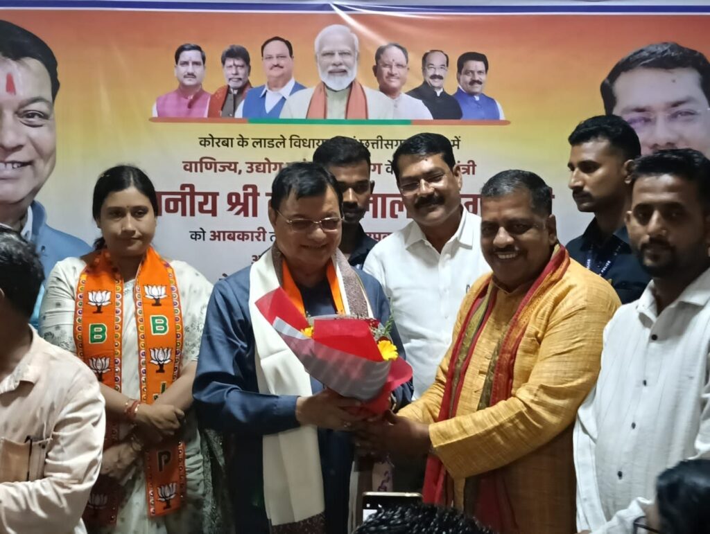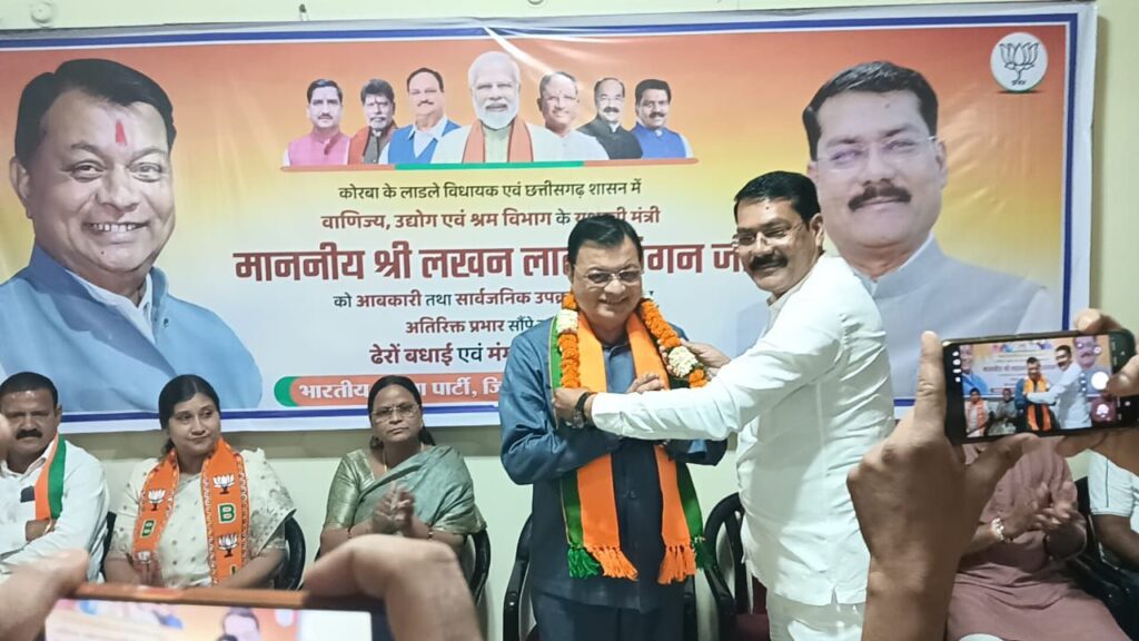 कोरबा में मंत्री लखनलाल देवांगन का ऐतिहासिक स्वागत, भाजपा कार्यालय में हुआ भव्य समारोह