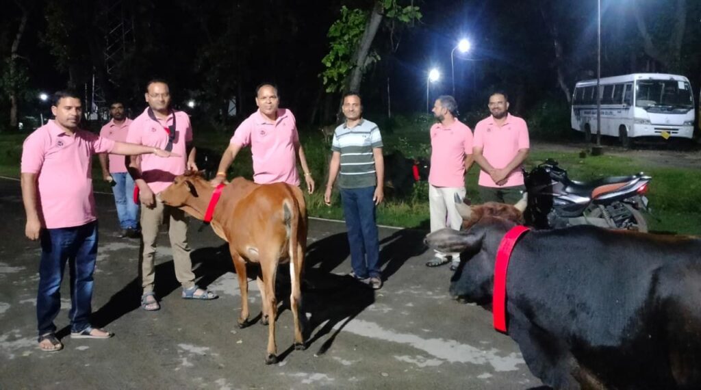 सड़क दुर्घटनाओं पर लगेगा अंकुश, मानव सेवा मिशन ने गायों को पहनाए रेडियम बेल्ट