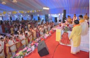 कथा में समुद्र मंथन का रोचक प्रसंग सुनाते हुए उन्होंने बताया कि 14 रत्नों की प्राप्ति हुई, जिनमें अमृत कलश भी शामिल था। असुरों द्वारा छीनने पर भगवान मोहिनी स्वरूप में प्रकट हुए और देवताओं को अमृत पान कराकर विजय दिलाई।