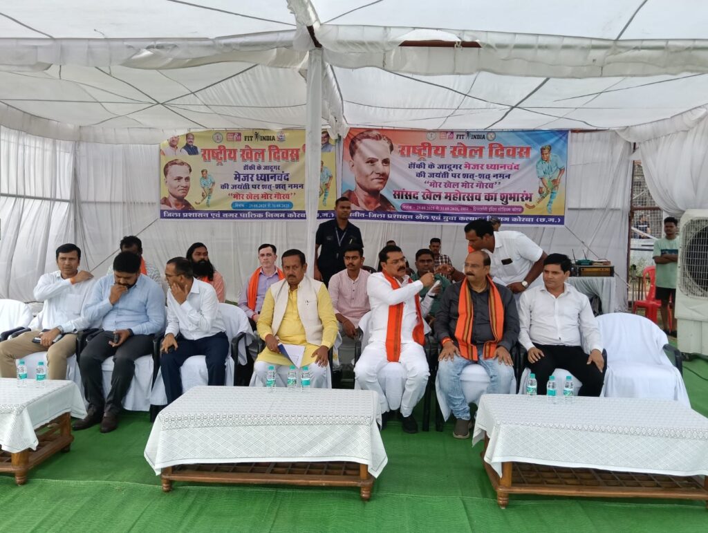 राष्ट्रीय खेल दिवस पर कोरबा में सांसद खेल महोत्सव का भव्य शुभारंभ – राज्यसभा सांसद देवेंद्र प्रताप सिंह ने किया उद्घाटन, ध्यानचंद की स्मृति में युवाओं को खेलों से जोड़े जाने का आह्वान