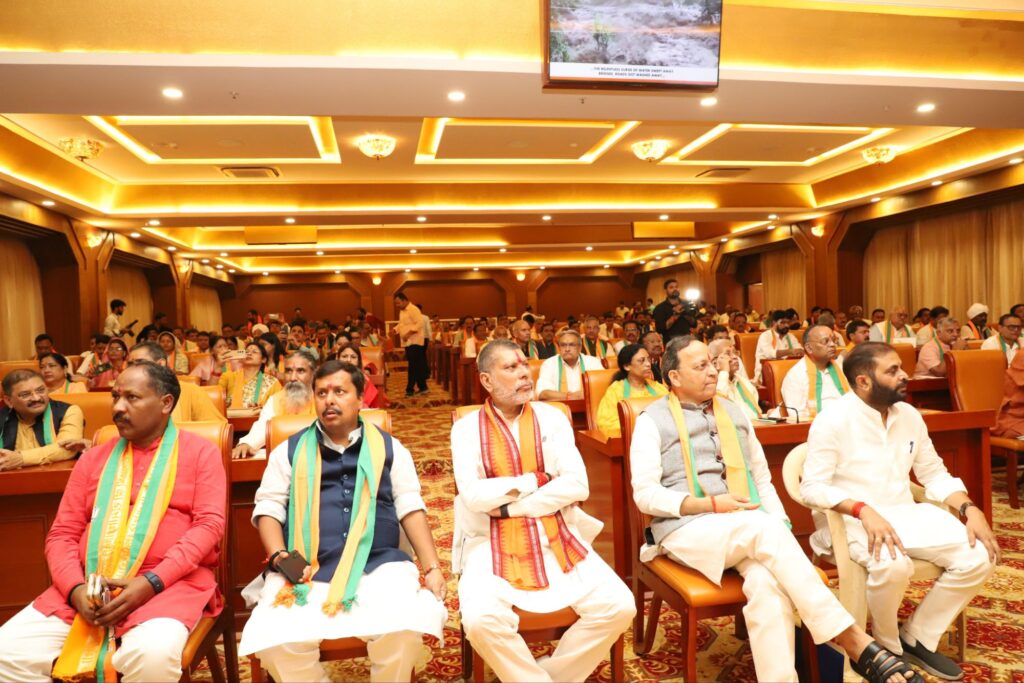 इससे पूर्व भाजपा के सभी केंद्रीय व प्रादेशिक वरिष्ठ नेताओं ने कुशाभाऊ ठाकरे परिसर में स्थित स्मृति मंदिर में संगठन के पितृपुरुषों डॉ. श्यामाप्रसाद मुखर्जी, पं. दीनदयाल उपाध्याय, पूर्व प्रधानमंत्री ‘भारत रत्न’ अटलबिहारी वाजपेयी, कुशाभाऊ ठाकरे व राजमाता विजयाराजे सिंधिया की प्रतिमाओं पर पुष्पांजलि अर्पित कर अपनी श्रद्धा निवेदित की। इस मौके पर भाजपा राष्ट्रीय महासचिव अरुण सिंह, भाजपा प्रदेश प्रभारी नितिन नबीन, प्रदेश अध्यक्ष किरण देव, प्रदेश संगठन महामंत्री पवन साय, प्रदेश महामंत्री अखिलेश सोनी, यशवंत जैन, डॉ. नवीन मार्कण्डेय, कैबिनेट मंत्री गण, सांसद, विधायक सहित भाजपा पदाधिकारी एवं कार्यकर्ता उपस्थित थे।