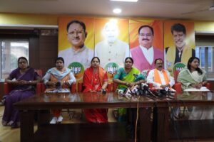 पत्रकार वार्ता के दौरान रायपुर (शहर) जिला भाजपा अध्यक्ष रमेश ठाकुर, महिला मोर्चा जिला अध्यक्ष सीमा संतोष साहू, भाजपा प्रदेश प्रवक्ता डॉ. किरण बघेल, तथा महिला मोर्चा प्रदेश सोशल मीडिया प्रभारी कृतिका जैन उपस्थित रहीं।