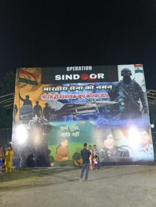 त्रिनेत्र टाइम्स कोरबा ***/ कोरबा में आयोजित “ऑपरेशन सिंदूर” कार्यक्रम ने लोगों के दिलों में देशभक्ति का जज़्बा जगा दिया। इस अवसर पर लगाया गया भव्य मंच और आकर्षक पंडाल शहरवासियों के लिए विशेष आकर्षण का केंद्र रहा। मंच पर भारतीय सेना की शौर्य गाथा को जीवंत रूप में प्रदर्शित किया गया, जिसमें भारतीय सैनिकों की तस्वीरें, युद्धक विमान और सेना के शौर्यपूर्ण पराक्रम को उकेरा गया था। मंच की भव्यता और सजीव चित्रण ने दर्शकों को मंत्रमुग्ध कर दिया।
