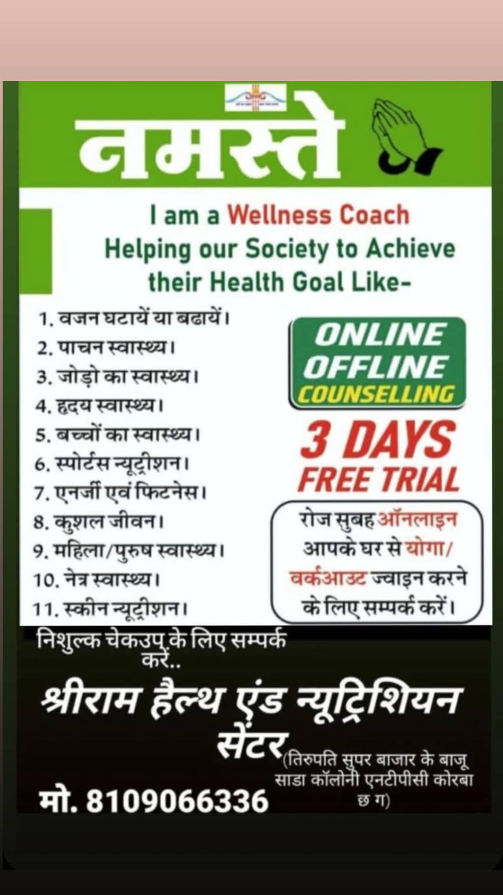 त्रिनेत्र टाइम्स कोरबा ***/कोरबा। आज की भागदौड़ भरी जिंदगी में लोग अपनी जरूरतों को पूरा करने में इतने व्यस्त हो गए हैं कि अपने स्वास्थ्य के प्रति ध्यान ही नहीं दे पाते। नतीजा यह होता है कि गलत खानपान और असंतुलित जीवनशैली की वजह से तमाम बीमारियाँ घेर लेती हैं। विश्व स्वास्थ्य संगठन (WHO) की रिपोर्ट के अनुसार ब्लड प्रेशर, डायबिटीज, थायराइड, पीरियड से जुड़ी समस्याएँ, जोड़ों का दर्द, गैस की समस्या समेत 70 से अधिक प्रकार की बीमारियाँ केवल गलत लाइफस्टाइल की देन हैं।