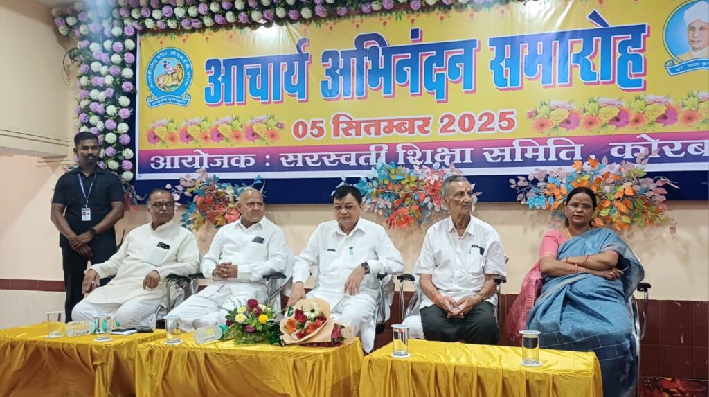 शिक्षक दिवस पर सरस्वती शिक्षा समिति का भव्य आचार्य अभिनंदन समारोह, मंत्री लखन लाल देवांगन और महापौर संजू देवी राजपूत ने बढ़ाया कार्यक्रम का गौरव