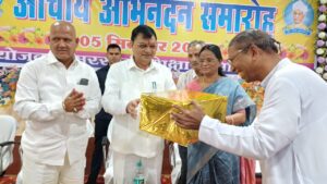 कार्यक्रम में सरस्वती शिक्षा समिति के पदाधिकारियों ने विशिष्ट अतिथियों का शाल, श्रीफल और प्रतीक चिन्ह भेंटकर सम्मान किया। इसी क्रम में विद्यालय के वरिष्ठ शिक्षकों को भी “आचार्य सम्मान” से अलंकृत किया गया।