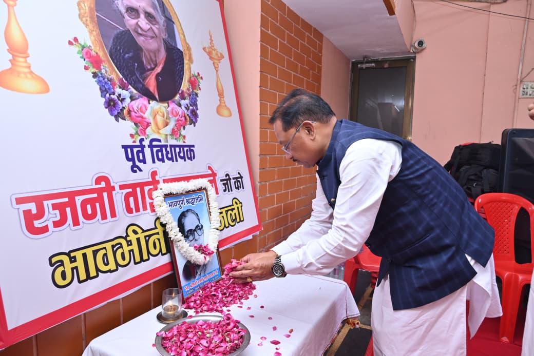 मुख्यमंत्री साय पहुँचे उपासने निवास, रजनी ताई को दी श्रद्धांजलि*