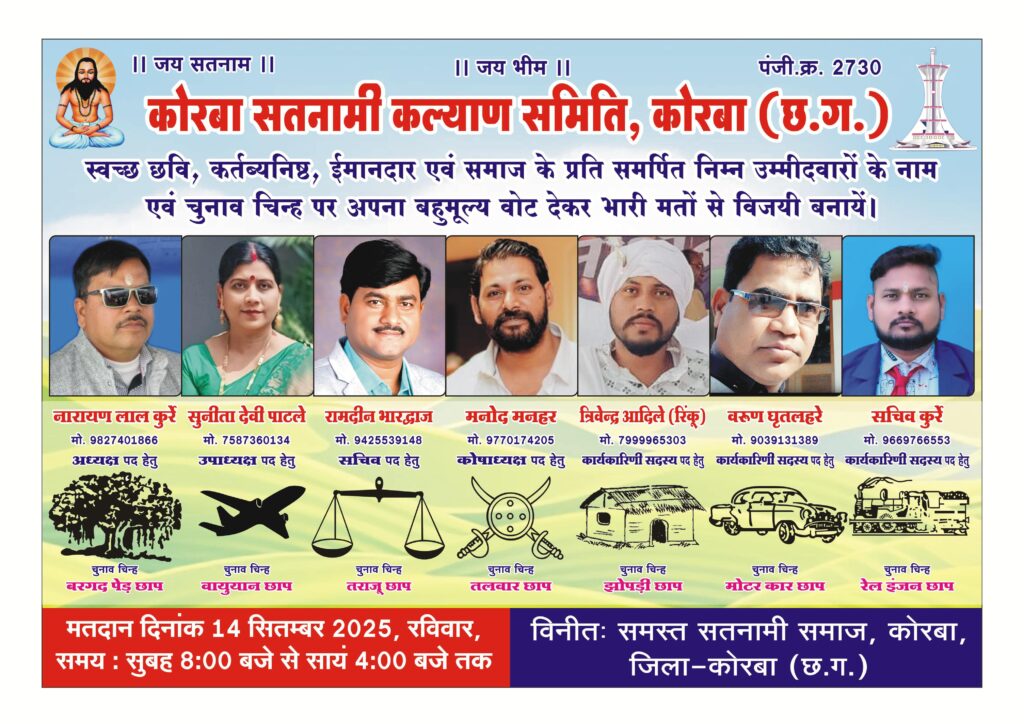 कोरबा सतनामी कल्याण समिति के सभी उम्मीदवार निर्विरोध विजयी घोषित – समाज में दिखा उत्साह का माहौल