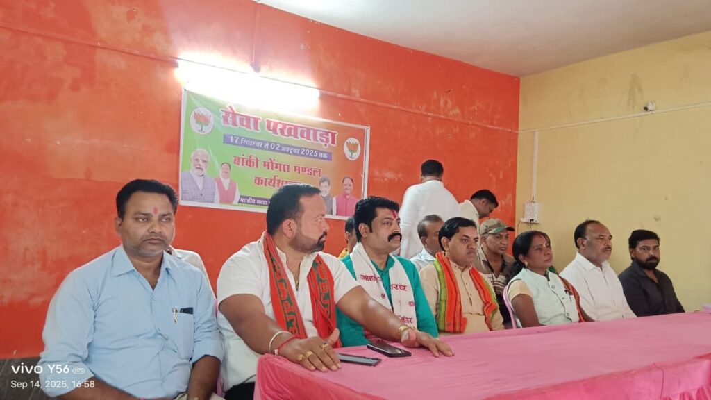 त्रिनेत्र टाइम्स बाकी मोगरा, छत्तीसगढ़। भारतीय जनता पार्टी के राष्ट्रीय एवं प्रदेश नेतृत्व के निर्देशानुसार आगामी 17 सितंबर से 2 अक्टूबर तक चलने वाले सेवा पखवाड़ा कार्यक्रम को प्रभावी एवं संगठित रूप से संपन्न कराने हेतु आज बाकी मोगरा मंडल द्वारा भव्य मंडल स्तरीय सेवा पखवाड़ा कार्यशाला का आयोजन जिला भाजपा कार्यालय में संपन्न हुआ।