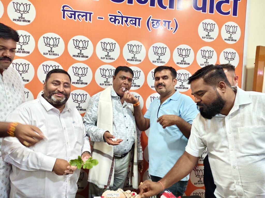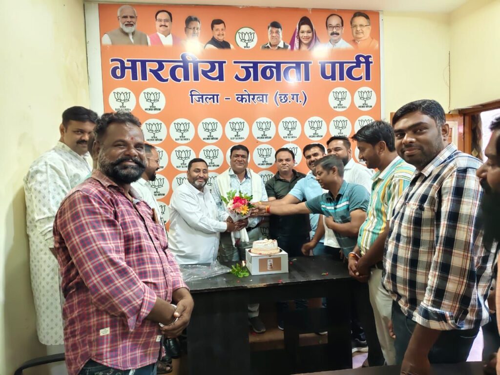 त्रिनेत्र टाइम्स कोरबा। भाजपा अनुसूचित जाति मोर्चा के जिलाध्यक्ष सरजू अजय का जन्मदिन टी.पी. नगर स्थित भाजपा जिला कार्यालय में बड़े उत्साह और हर्षोल्लास के साथ मनाया गया। इस अवसर पर भाजपा जिलाध्यक्ष गोपाल मोदी सहित बड़ी संख्या में पदाधिकारी और कार्यकर्ता उपस्थित रहे।