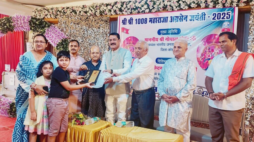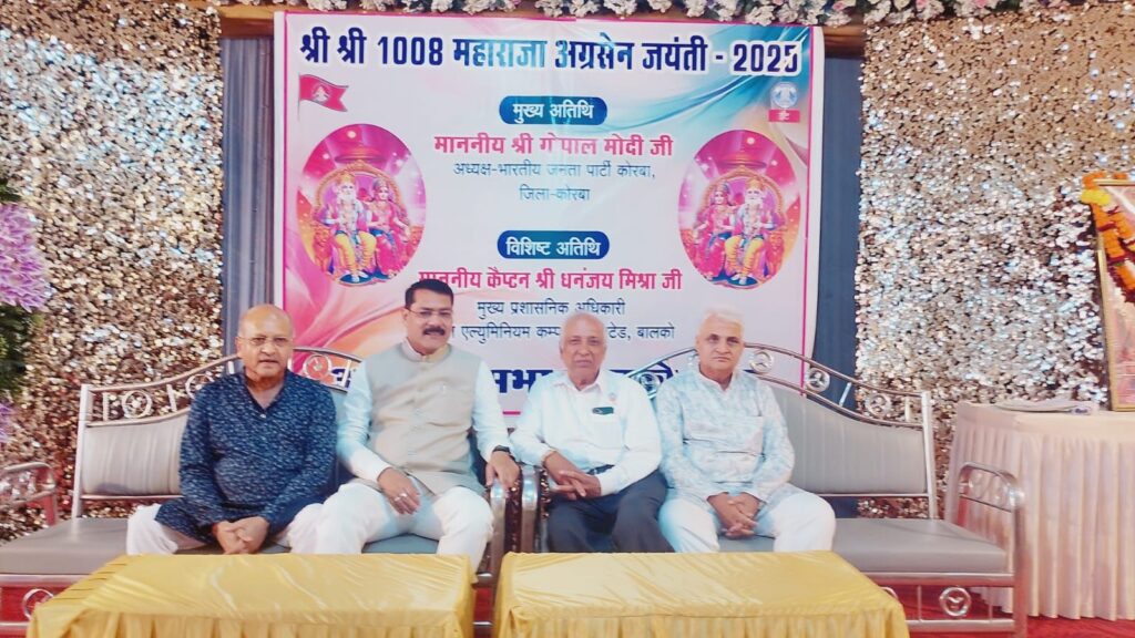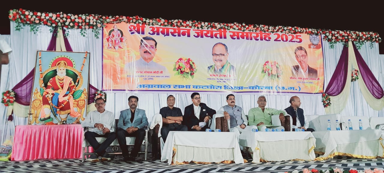 कोरबा।अग्रवाल सभा कटघोरा और बालकोनगर के संयुक्त तत्वावधान में बड़े हर्षोल्लास और धूमधाम के साथ महाराजा अग्रसेन जयंती समारोह का भव्य आयोजन किया गया। इस अवसर पर भारतीय जनता पार्टी जिला कोरबा के ऊर्जावान जिलाध्यक्ष गोपाल मोदी मुख्य अतिथि के रूप में उपस्थित रहे, जिनका अग्रवाल समाज के लोगों ने आत्मीय स्वागत किया।