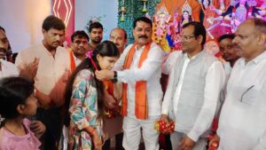 हरदी बाजार दुर्गा पंडाल में भाजपा जिला अध्यक्ष गोपाल मोदी का भव्य स्वागत, प्रतिभागी बच्चियों को किया सम्मानित
