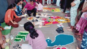 इस दौरान आयोजित रंगोली प्रतियोगिता में भाग लेने वाली नन्हीं बच्चियों को जिला अध्यक्ष गोपाल मोदी ने अपने हाथों से मेडल पहनाकर सम्मानित किया। बच्चियों की प्रतिभा को प्रोत्साहन देने के इस क्षण ने कार्यक्रम को और भी खास बना दिया।