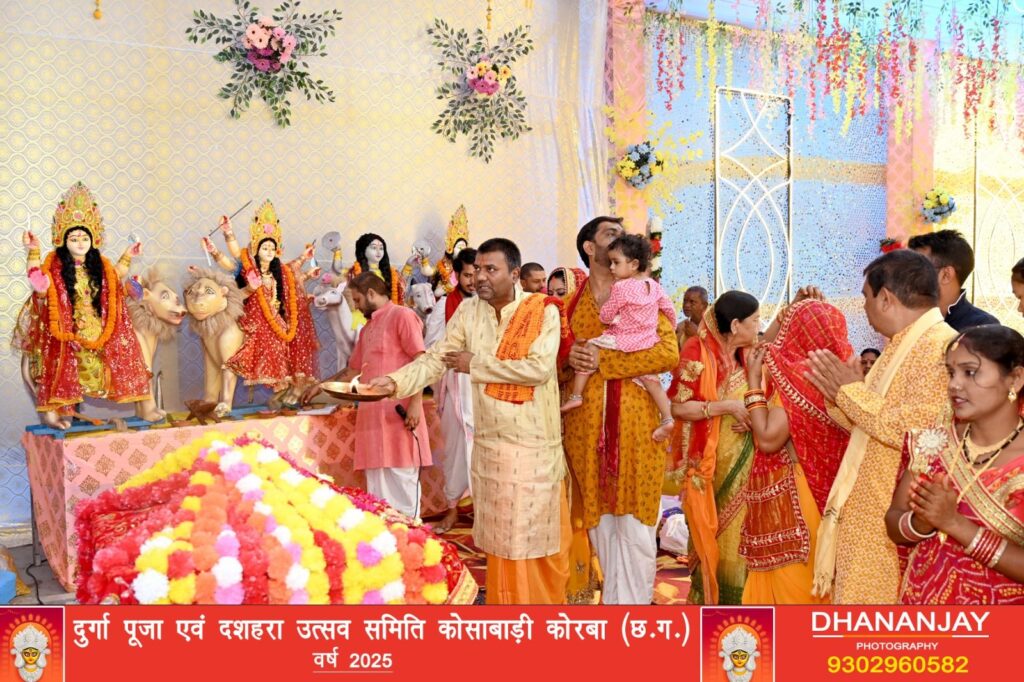 आज की पूजा में विशेष रूप से स्कूल के बच्चों की भागीदारी सबसे आकर्षक रही। पारंपरिक परिधान में सजे बच्चे माता की आरती और पूजा में शामिल हुए। उनके जयकारों से पूरा माहौल भक्तिमय और ऊर्जावान बन गया। आयोजकों ने बच्चों को प्रसाद और आशीर्वाद देकर उत्साहवर्धन किया।