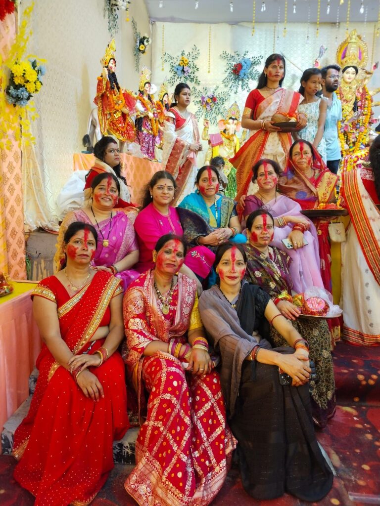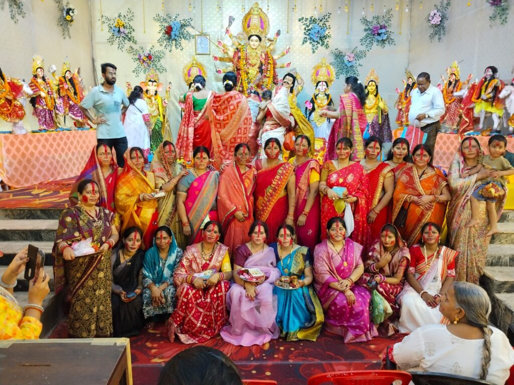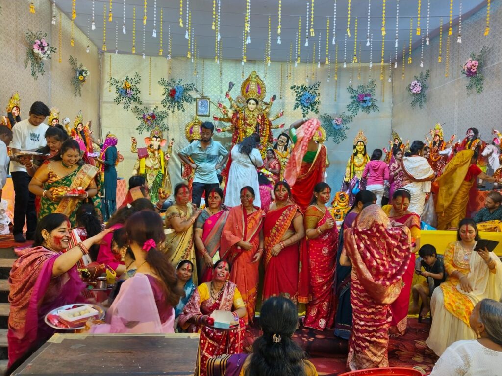 सिंदूर खेला की मंगलिमय रस्म के साथ मां दुर्गा की भावभीनी विदाई — फेस वन राजेंद्र प्रसाद नगर में उमड़ा भक्तों का सैलाब