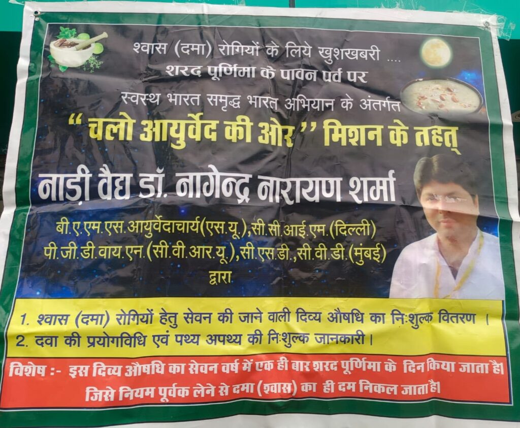 शरद पूर्णिमा पर श्वास रोगियों के लिए चित्रकूट की दिव्य औषधि का निशुल्क वितरण — आयुर्वेदिक परामर्श एवं उपचार शिविर का आयोजन 6 अक्टूबर को