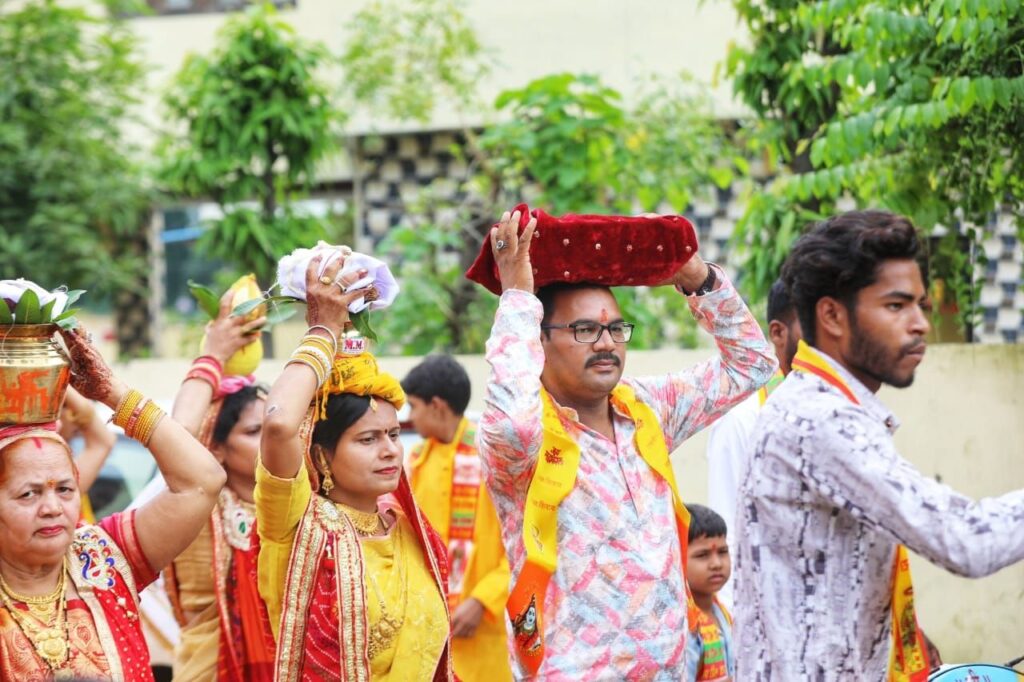 कथा प्रतिदिन सुबह 9 से 11 बजे तक वैदिक पूजन और दोपहर 2 से 6 बजे तक चल रही है। लक्ष्मी निवास परिसर को भव्य सजावट से सजाया गया है। कथा के प्रारंभ में महिलाओं द्वारा पारंपरिक परिधानों में निकाली गई कलश यात्रा और ढोल-नगाड़ों की गूंज ने वातावरण को भक्तिमय बना दिया। कथा के दौरान भजन-कीर्तन, आरती और शिव नाम के जयघोष से ऐसा प्रतीत होता है मानो स्वयं कैलाशधाम अवतरित हो गया हो।