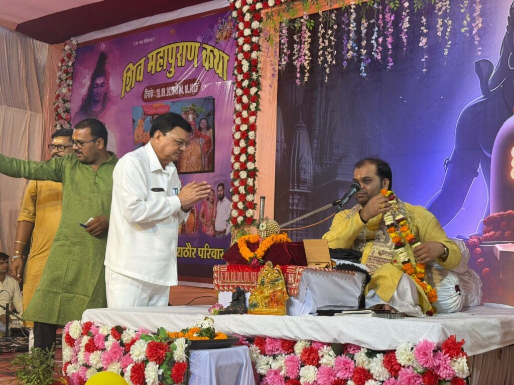 इस अवसर पर छत्तीसगढ़ शासन के श्रम, उद्योग, आबकारी एवं सार्वजनिक उपक्रम मंत्री श्री लखनलाल देवांगन भी विशेष रूप से उपस्थित रहे। उन्होंने श्रद्धापूर्वक कथा श्रवण किया और कहा — “शिव कथा केवल आस्था का पर्व नहीं, बल्कि यह समाज को एकता, संस्कृति और सकारात्मक ऊर्जा से जोड़ने का माध्यम है। ऐसे धार्मिक आयोजन समाज में सद्भाव और आध्यात्मिक चेतना को मजबूत बनाते हैं।”