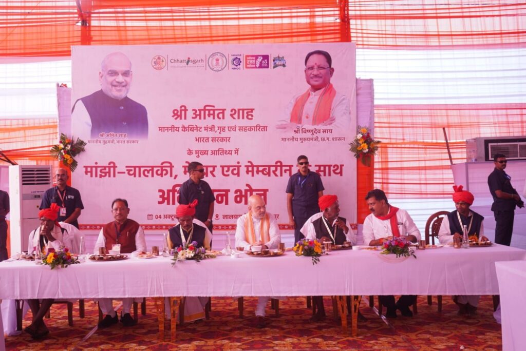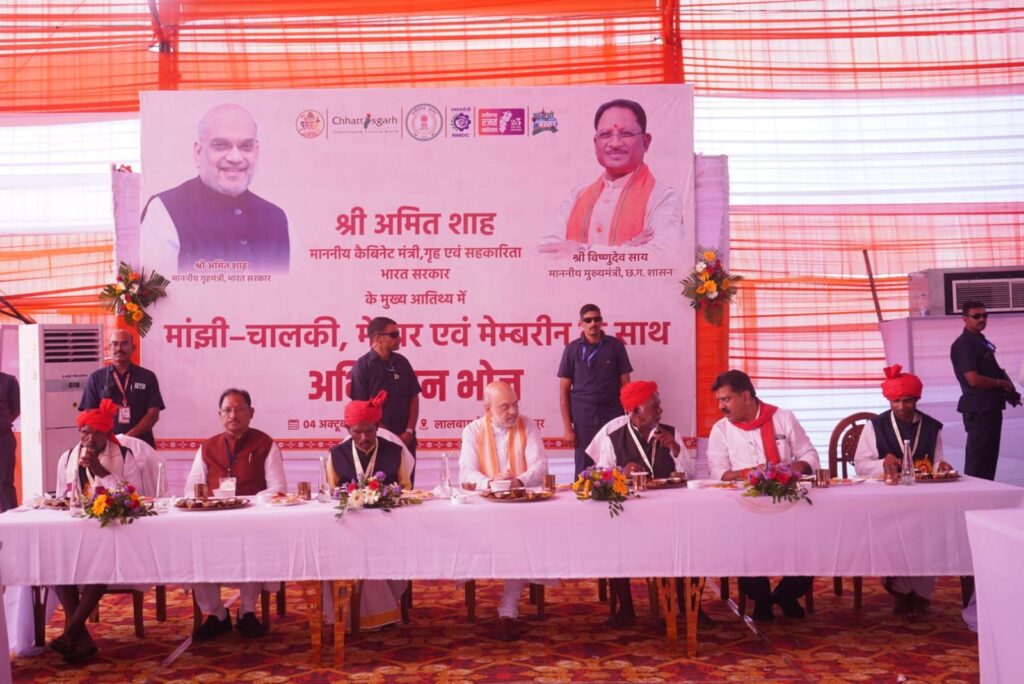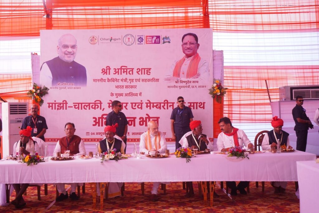 केन्द्रीय गृहमंत्री एवं सहकारिता अमित शाह ने बस्तर दशहरा से सम्बंधित मांझी-चालकी, मेम्बर एवं मेम्बरीन के साथ अभिनंदन भोज किया। इस भोज में क्षेत्र के पारम्परिक व्यंजनों कों समाहित किया गया था, जिसकी प्रशंसा केंद्रीय गृह मंत्री श्री शाह ने किया।