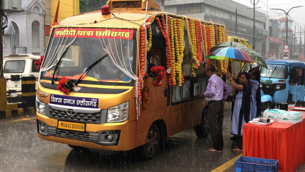 गुरु गोविंद सिंह जी की 350वीं शहीदी शताब्दी दिवस के पावन अवसर पर छत्तीसगढ़ सिख समाज द्वारा संपूर्ण प्रदेश में निकाली गई भव्य कीर्तन एवं शहीदी यात्रा आज दोपहर 3 बजे कोरबा पहुँची। यात्रा के श्री सप्तदेव मंदिर पहुँचने पर श्रद्धालुओं एवं नगरवासियों ने झमाझम बारिश के बीच उत्साहपूर्वक स्वागत कर ऐतिहासिक क्षण को अविस्मरणीय बना दिया।