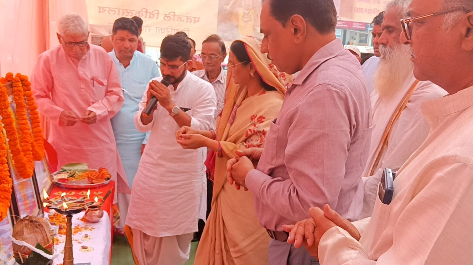 समारोह की शुरुआत भारत माता और भगवान धनवंतरी जी के तैलचित्र पर माल्यार्पण और दीप प्रज्ज्वलन से हुई। यज्ञाचार्य पंडित सत्यम शर्मा एवं नाड़ीवैद्य पंडित शिव कुमार शर्मा द्वारा भगवान धनवंतरी जी का षोडशोपचार पूजन कराया गया।