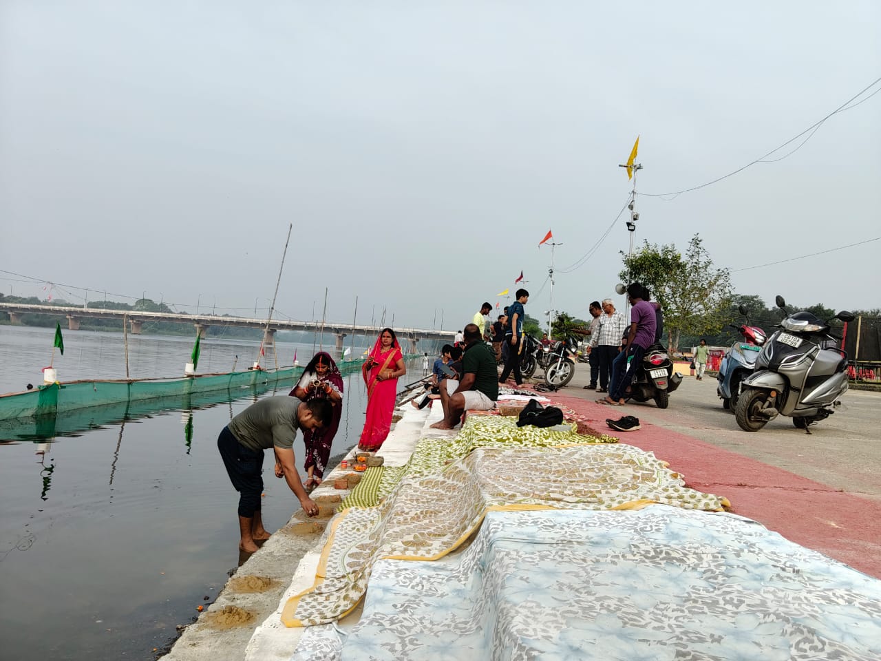 рдкреВрд░реЗ рдШрд╛рдЯ рдХреНрд╖реЗрддреНрд░ рдХреЛ рдЖрдХрд░реНрд╖рдХ рд╕рдЬрд╛рд╡рдЯ рдФрд░ рд░реЛрд╢рдиреА рд╕реЗ рджреБрд▓реНрд╣рди рдХреА рддрд░рд╣ рд╕рдЬрд╛рдпрд╛ рдЧрдпрд╛ рдерд╛ред рд░рдВрдЧ-рдмрд┐рд░рдВрдЧреА рдЭрд╛рд▓рд░реЗрдВ, рд▓рд╛рдЗрдЯреЛрдВ рдХреА рдЭрд┐рд▓рдорд┐рд▓рд╛рд╣рдЯ, рдлреВрд▓реЛрдВ рдХреА рд╕рдЬрд╛рд╡рдЯ рдФрд░ рдирджреА рдореЗрдВ рдкрдбрд╝рддреЗ рдкреНрд░рдХрд╛рд╢ рдХреЗ рдкреНрд░рддрд┐рдмрд┐рдВрдм рдиреЗ рдЕрджреНрднреБрдд рджреГрд╢реНрдп рдЙрддреНрдкрдиреНрди рдХрд░ рджрд┐рдпрд╛ред рд░рд╛рдд рд╕реЗ рд╣реА рд╢реНрд░рджреНрдзрд╛рд▓реБрдУрдВ рдХреА рдЖрд╡рд╛рдЬрд╛рд╣реА рдЬрд╛рд░реА рдереА рдФрд░ рд╕реБрдмрд╣ рд╣реЛрддреЗ-рд╣реЛрддреЗ рдШрд╛рдЯ рдкрд░ рдЬрдирд╕реИрд▓рд╛рдм рдЙрдордбрд╝ рдЖрдпрд╛ред