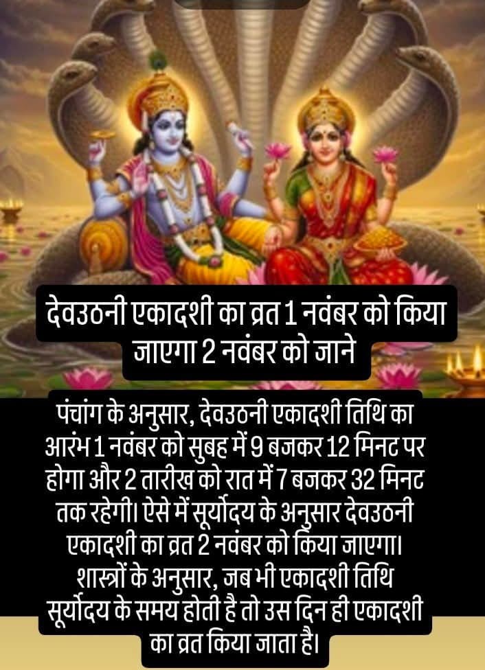कार्तिक शुक्ल एकादशी तिथि का प्रारंभ — 1 नवंबर 2025, शनिवार प्रातः 09 बजकर 12 मिनट से