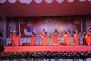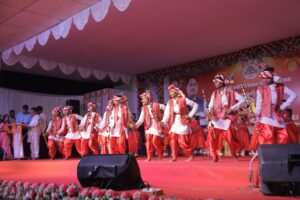 कार्यक्रम की शुरुआत पारंपरिक छत्तीसगढ़ी वाद्ययंत्रों की मधुर धुनों के साथ हुई, जिसके बाद प्रसिद्ध छत्तीसगढ़ी जसगीत गायक श्री दिलीप षड़ंगी ने अपनी सुरमयी प्रस्तुति से पूरा परिसर गुंजा दिया। उनके गीतों पर दर्शक उत्साह और गर्व से झूमते नजर आए।