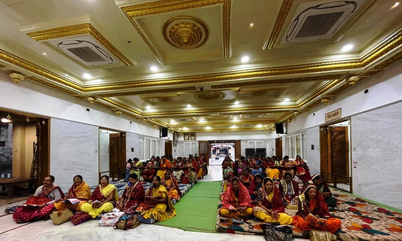 рдордВрдЧрд▓рдкрд╛рдареА рдмрд╣рдиреЛрдВ рдиреЗ рдкрд╛рд░рдВрдкрд░рд┐рдХ рдкрд░рд┐рдзрд╛рдитАФрдирде, рдЪреВрдбрд╝рд╛, рдЪреБрдирдбрд╝реАтАФрдХреЗ рд╕рд╛рде рдПрдХ рд╕реНрд╡рд░, рдПрдХ рддрд╛рд▓ рдФрд░ рдПрдХ рд░рд╛рдЧ рдореЗрдВ рдордВрдЧрд▓рдкрд╛рда рдкреНрд░рд╕реНрддреБрдд рдХрд░ рдкреВрд░реЗ рдордВрджрд┐рд░ рдкрд░рд┐рд╕рд░ рдХреЛ рдЕрддреНрдпрдВрдд рдкрд╛рд╡рди рдФрд░ рднрдХреНрддрд┐рдордп рдмрдирд╛ рджрд┐рдпрд╛ред рднрдХреНрддрд┐-рд╕реБрд░реЛрдВ рдХреА рдЗрд╕ рд╕рд╛рдореВрд╣рд┐рдХ рдкреНрд░рд╕реНрддреБрддрд┐ рдиреЗ рд╡рд╛рддрд╛рд╡рд░рдг рдХреЛ рдЖрдзреНрдпрд╛рддреНрдорд┐рдХ рдКрд░реНрдЬрд╛ рд╕реЗ рднрд░ рджрд┐рдпрд╛ рдФрд░ рд╢реНрд░рджреНрдзрд╛рд▓реБрдУрдВ рдХреЛ рдЕрджреНрднреБрдд рд╢рд╛рдВрддрд┐ рдХрд╛ рдЕрдиреБрднрд╡ рдХрд░рд╛рдпрд╛ред