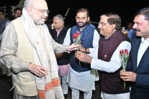 विमानतल का वातावरण “भारत माता की जय” और “अमित शाह जिंदाबाद” के नारों से गूंजता रहा।