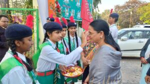 कार्यक्रम की शुरुआत स्कूल के परेड दल द्वारा महापौर को आकर्षक मार्च-पास्ट के साथ सलामी देने से हुई। इसके पश्चात छात्राओं द्वारा तिलक और पुष्पगुच्छ भेंट कर उनका गर्मजोशी से स्वागत किया गया।