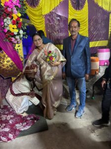 मंडप में पारंपरिक रीति–रिवाजों, मंत्रोच्चारण और मंगल संगीत की पवित्र ध्वनि के बीच मनीष और अनुष्का ने अग्नि को साक्षी मानकर सात फेरे लिए और जीवनभर एक–दूसरे का साथ निभाने का संकल्प लिया। विवाह स्थल को आकर्षक पुष्प सज्जा और प्रकाश से सजाया गया था, जिससे पूरा वातावरण मंगलमय और आनंदमयी बना रहा।
