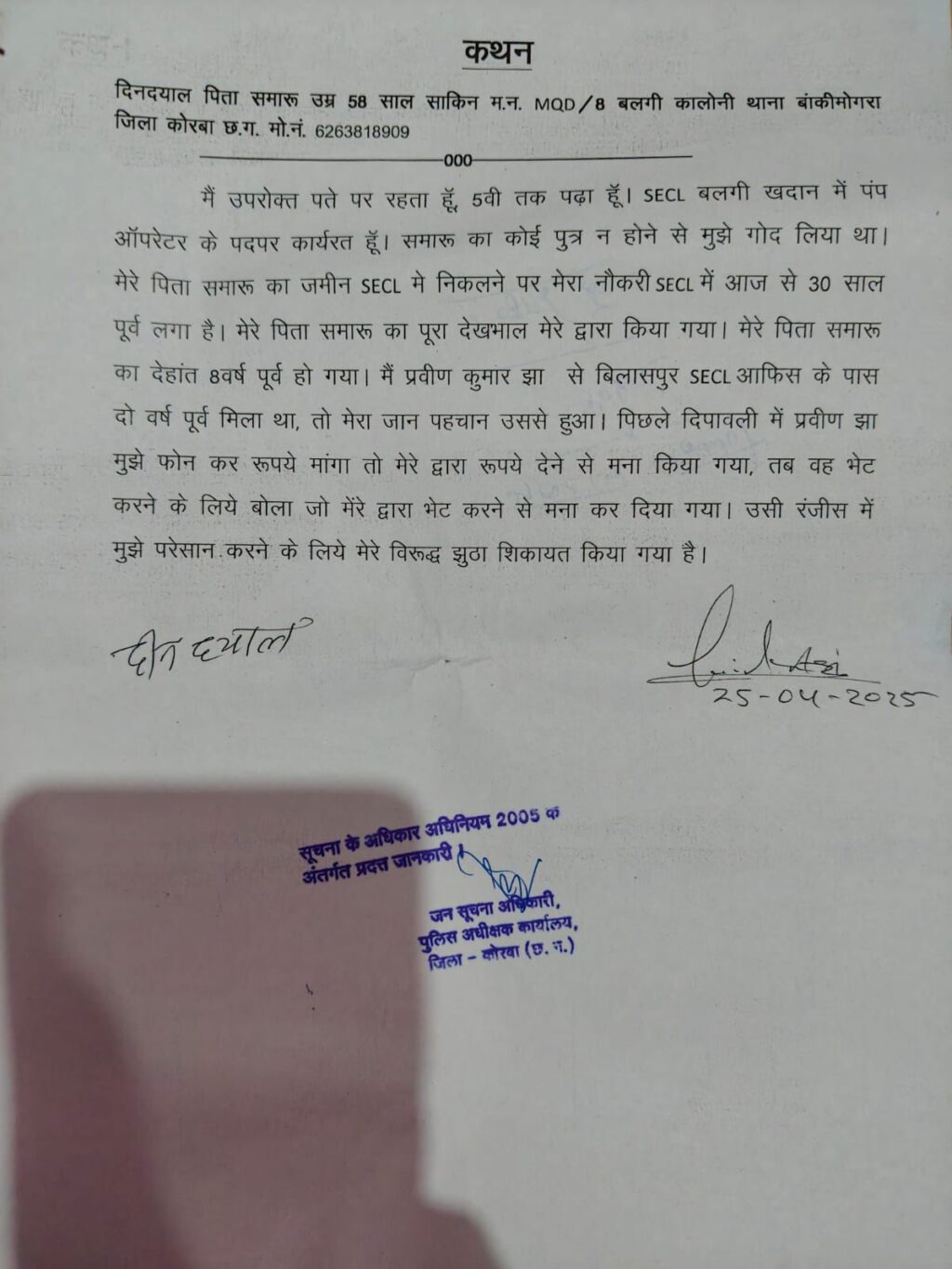 SECL कर्मचारी पर ठगी और शोषण के गंभीर आरोप से हलचल; FIR के बाद भी गिरफ्तारी नहीं, आदिवासी युवती ने दी आत्मदाह की चेतावनी