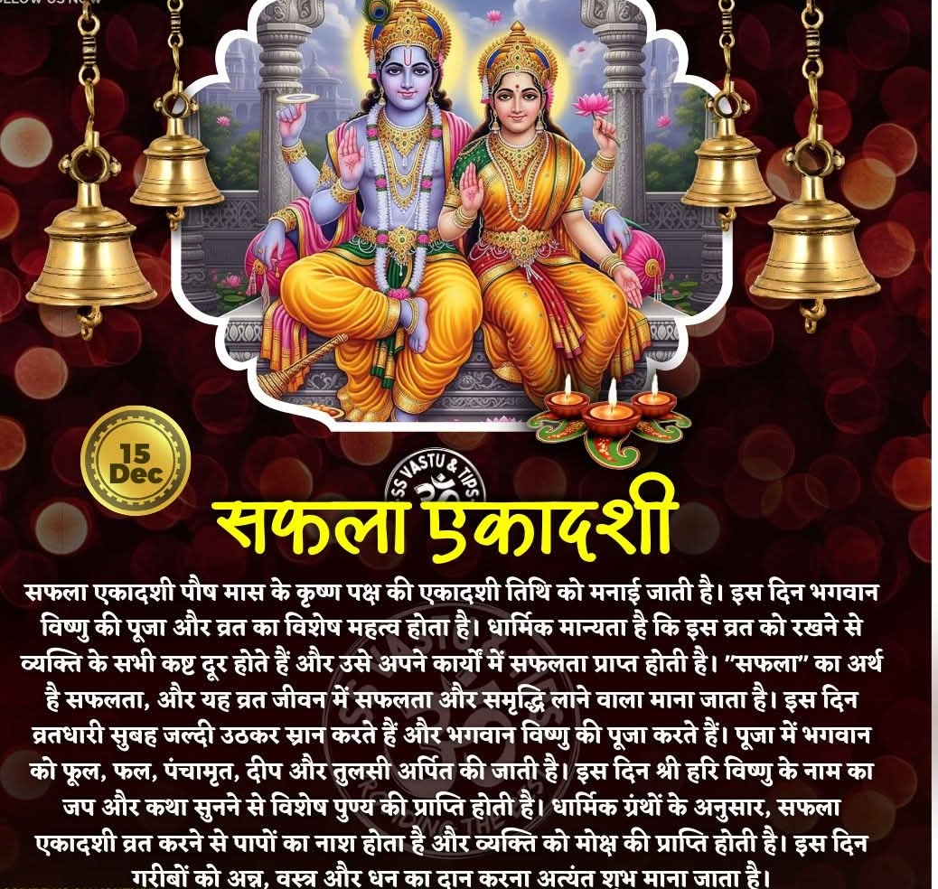 सफला एकादशी 15 दिसंबर को, व्रत-पारण 16 को — पाप नाश और मोक्षदायिनी एकादशी का विशेष महत्व