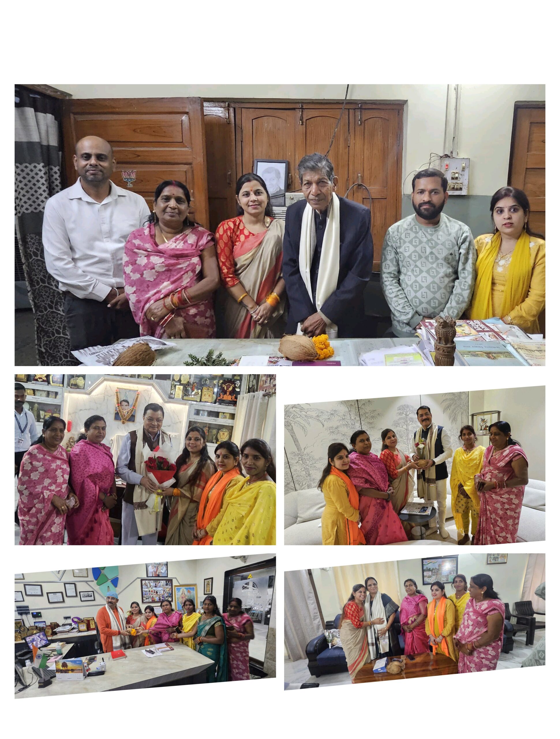 рдЗрд╕ рдХреНрд░рдо рдореЗрдВ рдирд╡рдирд┐рдпреБрдХреНрдд рдорд╣рд┐рд▓рд╛ рдореЛрд░реНрдЪрд╛ рдЬрд┐рд▓рд╛рдзреНрдпрдХреНрд╖ рджреНрд╡рд╛рд░рд╛ рдЧреЛрдкрд╛рд▓ рдореЛрджреА, рд░рд╛рдЬреАрд╡ рд╕рд┐рдВрд╣, рдирдирдХреА рд░рд╛рдо рдХрдВрд╡рд░, рдЬреЛрдЧреЗрд╢ рд▓рд╛рдВрдмрд╛, рдЕрд╢реЛрдХ рдЪрд╛рд╡рд▓рд╛рдиреА, рд▓рдЦрди рд▓рд╛рд▓ рджреЗрд╡рд╛рдВрдЧрди, рдорд╣рд╛рдкреМрд░ рд╕рдВрдЬреВ рджреЗрд╡реА рд░рд╛рдЬрдкреВрдд, рдЛрддреБ рдЪреМрд░рд╕рд┐рдпрд╛, рд╡реИрд╢рд╛рд▓реА рд░рддреНрдирдкрд╛рд░рдЦреА рдПрд╡рдВ рд╣рд┐рддрд╛рдирдВрдж рдЕрдЧреНрд░рд╡рд╛рд▓ рд╕реЗ рд╕реМрдЬрдиреНрдп рдореБрд▓рд╛рдХрд╛рдд рдХреА рдЧрдИред рд╕рднреА рд╡рд░рд┐рд╖реНрдардЬрдиреЛрдВ рдХрд╛ рдкрд╛рд░рдВрдкрд░рд┐рдХ рд░реВрдк рд╕реЗ рд╢рд╛рд▓, рд╢реНрд░реАрдлрд▓ рдПрд╡рдВ рдкреБрд╖реНрдк рднреЗрдВрдЯ рдХрд░ рдЖрддреНрдореАрдп рд╕рдореНрдорд╛рди рдХрд┐рдпрд╛ рдЧрдпрд╛ред