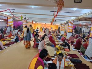 श्रद्धालुओं की आंखों में आस्था, हाथों में पुष्प और मन में श्रीकृष्ण का नाम—हर दृश्य आत्मा को स्पर्श कर रहा था। पोथी (ग्रंथ) पूजन मानो श्रीमद्भागवत कथा के सफल आयोजन हेतु भगवान से आशीर्वाद प्राप्त करने का दिव्य माध्यम बन गया। यह पूजन अनुष्ठान सुबह 10:00 बजे तक संपन्न हुआ, जिसमें कथा की सफलता, लोककल्याण एवं विश्व शांति की मंगलकामना की गई।