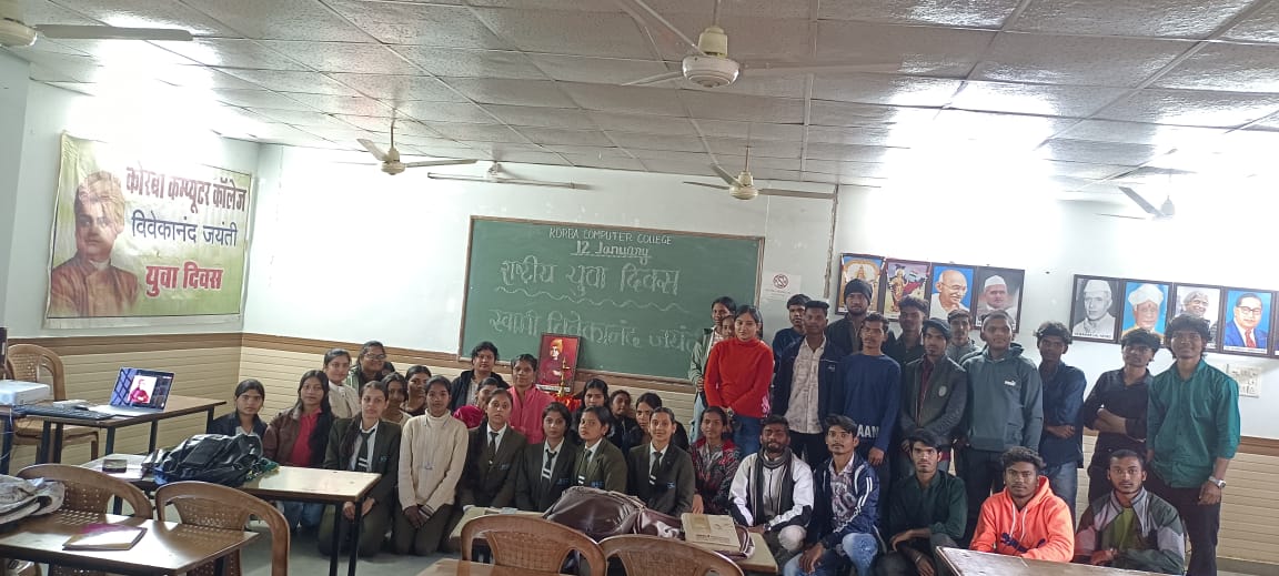 त्रिनेत्र टाइम्स कोरबा ****//** कोरबा शिक्षण समिति द्वारा संचालित एवं अटल बिहारी वाजपेई विश्वविद्यालय से संबद्ध कोरबा कंप्यूटर महाविद्यालय (केसीसी) में स्वामी विवेकानंद जयंती एवं राष्ट्रीय युवा दिवस बड़े ही उत्साह, गरिमा और प्रेरणादायी वातावरण में मनाया गया। इस अवसर पर विद्यार्थियों के सर्वांगीण विकास को ध्यान में रखते हुए पीपीटी प्रेजेंटेशन, भाषण, गीत एवं सांस्कृतिक प्रस्तुतियों का आयोजन किया गया।