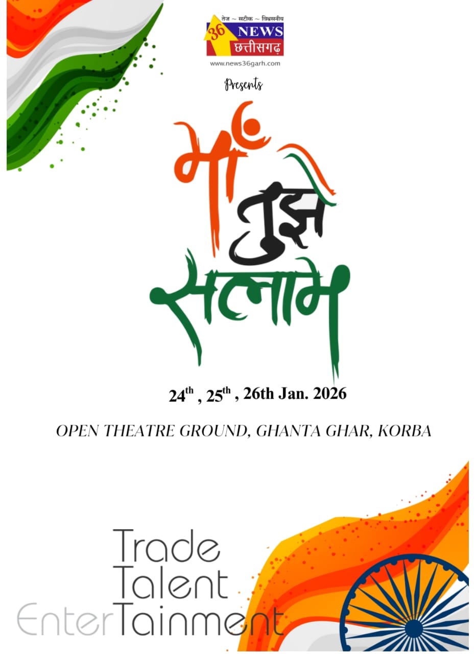 рддреНрд░рд┐рдиреЗрддреНрд░ рдЯрд╛рдЗрдореНрд╕ рдХреЛрд░рдмрд╛ ****//** рдХреЛрд░рдмрд╛┬а рдЧрдгрддрдВрддреНрд░ рджрд┐рд╡рд╕ рд╕реЗ рдЬреБрдбрд╝реА рдХреЛрд░рдмрд╛ рдХреА рдкрд╣рдЪрд╛рди рдмрди рдЪреБрдХрд╛, рдЬрди-рдЬрди рдХреА рднрд╛рд╡рдирд╛рдУрдВ рд╕реЗ рдУрддрдкреНрд░реЛрдд рдФрд░ рд░рд╛рд╖реНрдЯреНрд░рднрдХреНрддрд┐ рдХреА рднрд╛рд╡рдирд╛ рдХреЛ рдЬрдирдЖрдВрджреЛрд▓рди рдореЗрдВ рдмрджрд▓рдиреЗ рд╡рд╛рд▓рд╛ рдкреНрд░рддрд┐рд╖реНрдард┐рдд рдХрд╛рд░реНрдпрдХреНрд░рдо тАШрдорд╛рдВ рддреБрдЭреЗ рд╕рд▓рд╛рдотАЩ рдЗрд╕ рд╡рд░реНрд╖ рдЕрдкрдиреЗ 20рд╡реЗрдВ рдЧреМрд░рд╡рд╢рд╛рд▓реА рд╡рд░реНрд╖ рдореЗрдВ рдкреНрд░рд╡реЗрд╢ рдХрд░ рд░рд╣рд╛ рд╣реИред рджреЛ рджрд╢рдХреЛрдВ рд╕реЗ рдирд┐рд░рдВрддрд░ рдЖрдпреЛрдЬрд┐рдд рд╣реЛ рд░рд╣рд╛ рдпрд╣ рдЖрдпреЛрдЬрди рдЕрдм рддрдХ рдордВрдЪреАрдп рд╕рд╛рдВрд╕реНрдХреГрддрд┐рдХ рдХрд╛рд░реНрдпрдХреНрд░рдо рдХреЗ рд░реВрдк рдореЗрдВ рдЬрд╛рдирд╛ рдЬрд╛рддрд╛ рд░рд╣рд╛ рд╣реИ, рд▓реЗрдХрд┐рди рд╡рд░реНрд╖ 2026 рдореЗрдВ рдпрд╣ рдХрд╛рд░реНрдпрдХреНрд░рдо рдЗрддрд┐рд╣рд╛рд╕ рд░рдЪрдиреЗ рдЬрд╛ рд░рд╣рд╛ рд╣реИред