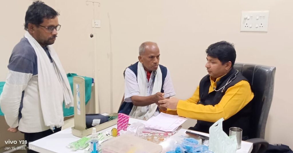 चलो आयुर्वेद की ओर” मिशन से सजी मकर संक्रांति: बिल्हा में निशुल्क आयुर्वेद-योग चिकित्सा शिविर, 108 रोगियों को मिला स्वास्थ्य लाभ